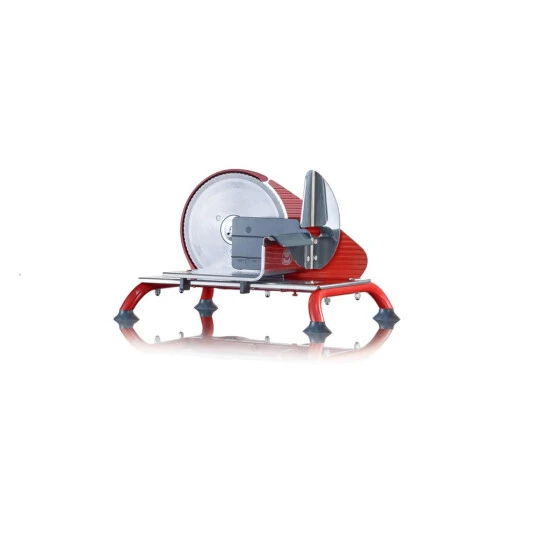 – Material: Vollmetallausführung / Schlittenführung aus Edelstahl – Leichtgängige Kurbel mit Echtholzgriff – Mit Standfüßen – Sauggummifüße – Restehalter – L x B x H: 37,5 x 36,5 x 24,5 cm – Farbe: Rot