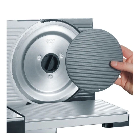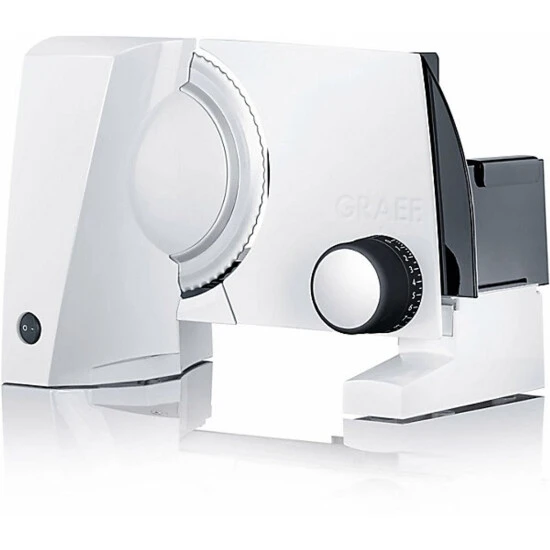Universeller Allesschneider SKS100 von Graef Der Allesschneider SKS100 von Graef ist der perfekte Einsteiger. Das Wellenschliffmesser aus Edelstahl hat einen Durchmesser von 170 mm und schneidet damit mühelos Brot auch mit harten Krusten, härteren Käse, verschiedene Gemüsesorten sowie Aufschnitt. Die Schnittstärke variiert dabei zwischen 0 – 20 mm. Der Allesschneider verfügt über eine Messerabdeckplatte, die abgenommen werden kann.