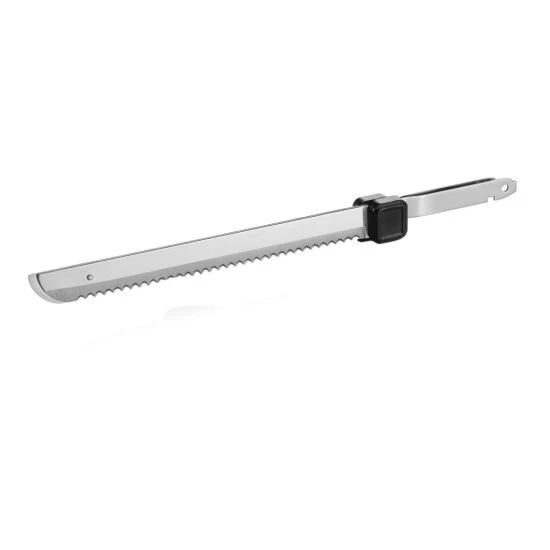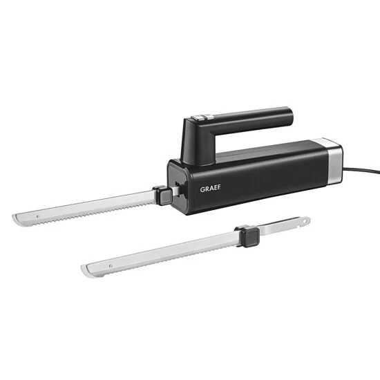 Ob Brot oder Braten, Ananas, Melonen oder gar tiefgefrorene Torten. Keine widersteht der gezahnten Doppelklinge. Mit zwei austauschbaren Messer-Sets zerteilt es mühe-los und mit wenig Druck alles, was ihm vor die Edelstahlklinge kommt, in gleichmäßige Scheiben. Das Gerät glänzt in schwarz und weiß sowie durch zeitloses Design.