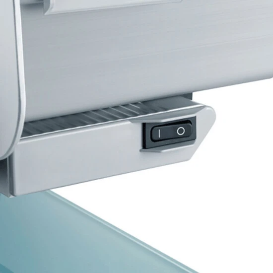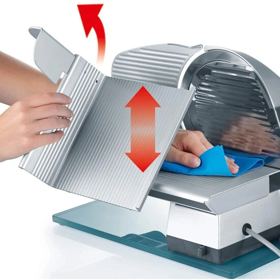 - Funktion: Einfache Messerentfernung & Reinigung, Messerabdeckplatte, Leistungsstarker Motor, Aluminiumschlitten mit extrabreiter Auflage und veredelter abnehmbarer Oberfläche, Ø 170 mm glattes durchgehärtetes Vollstahlmesser mit Hohlschliff für hauchdünne Scheiben