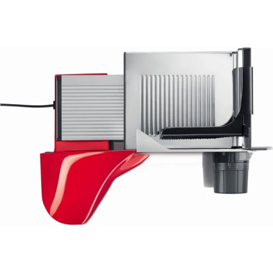 Durch eine höhere Position des Schlittens ist es möglich, direkt in hohe Kasserollen und Schüsseln oder in die Aufbewahrungsbox für den Kühlschrank zu schneiden, der zur Standardausstattung der SKS 501 und natürlich den anderen Farbvarianten gehört.