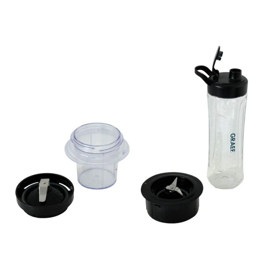 Bestehend aus einem 1,75l Glasbehälter mit Maßskala, einem kleinen extra Behälter zum zerkleinern von Lebensmitteln und praktischer ToGo Trinkflasche, stehen Ihnen verschiedene Varianten wie mixen, rühren, pürieren, shaken oder zerkleinern zur Verfügung.